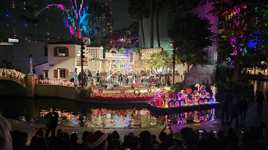 Sunday night’s Carols by Candlelight service was at the Arneson River Theater on the Riverwalk in San Antonio. It was our 22nd annual carols service, and the evening was beautiful. Tina Crawley from Chicago was the guest performer this year.